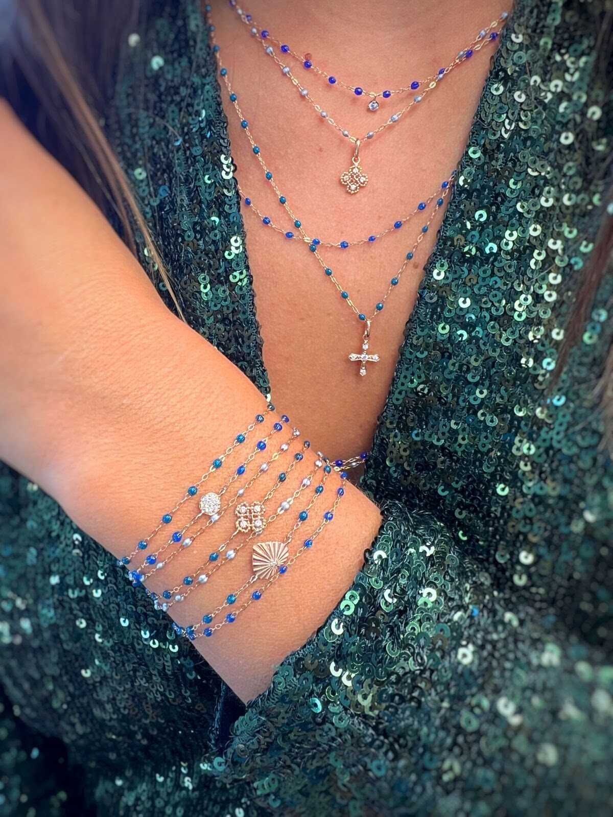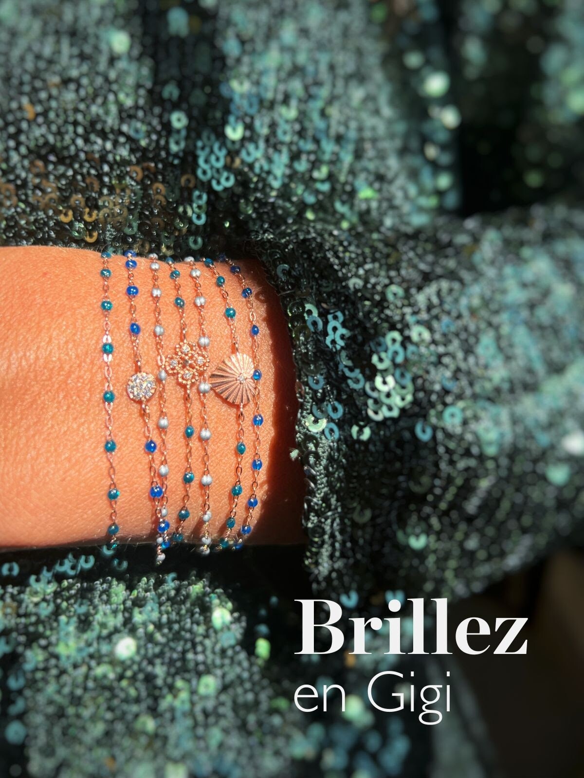 Sous la lumière des fêtes, Gigi scintille entre chance et éclat, le Lucky trèfle porte-bonheur et le Puce diamants dansent sur la peau comme des éclats de joie.