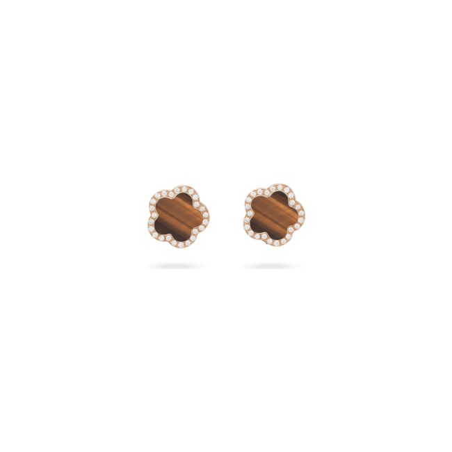 Fiore di Mamma Boucles d'oreilles Puces Cesare Pompanon Fiore di Mamma en or rose, diamants et oeil de tigre, petit modèle