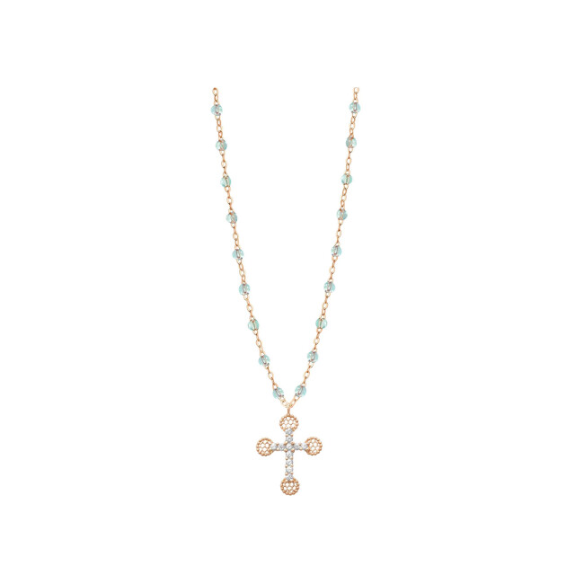 Collier Gigi Clozeau Croix Dentelle en or rose, résine ice et diamants, taille 42cm