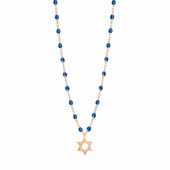 Collier Gigi Clozeau Etoile de David en or rose et résine bleu saphir, 42cm