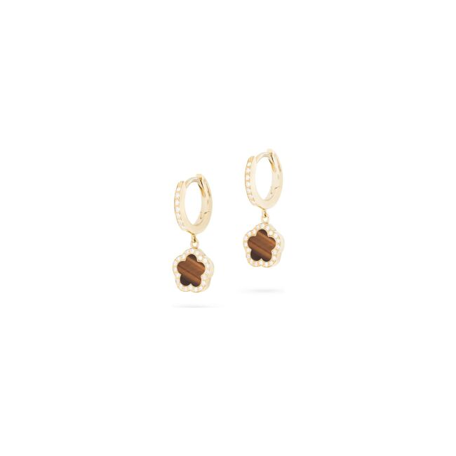 Fiore di Mamma Boucles d'oreilles Mini Créoles Cesare Pompanon Fiore di Mamma en or jaune, diamants et oeil de tigre, petit modèle