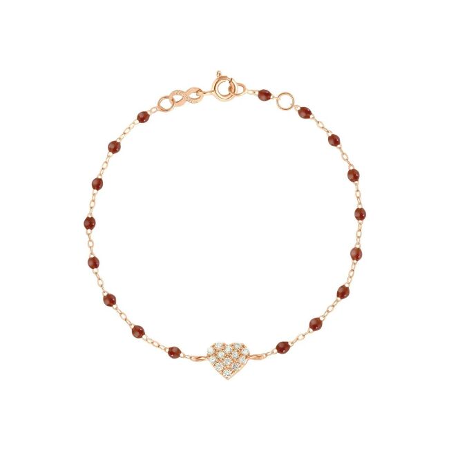 Bracelet Gigi Clozeau In Love en or rose, résine moka et diamants, taille 17cm