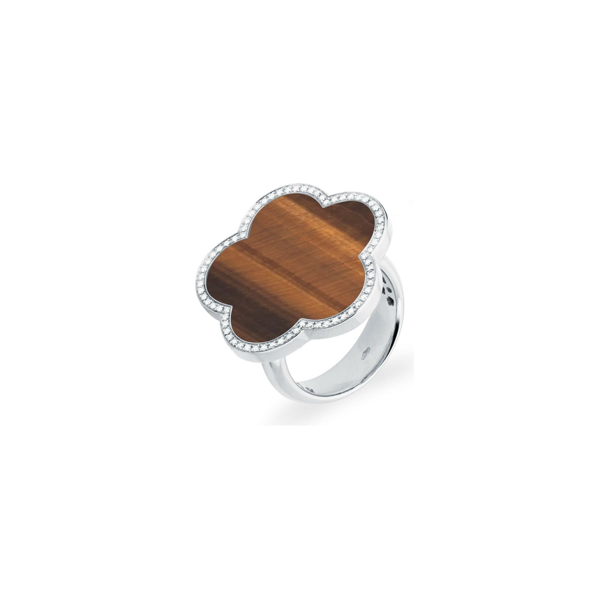 Fiore di Mamma Bague Cesare Pompanon Fiore di Mamma XL en or blanc, diamants et oeil de tigre