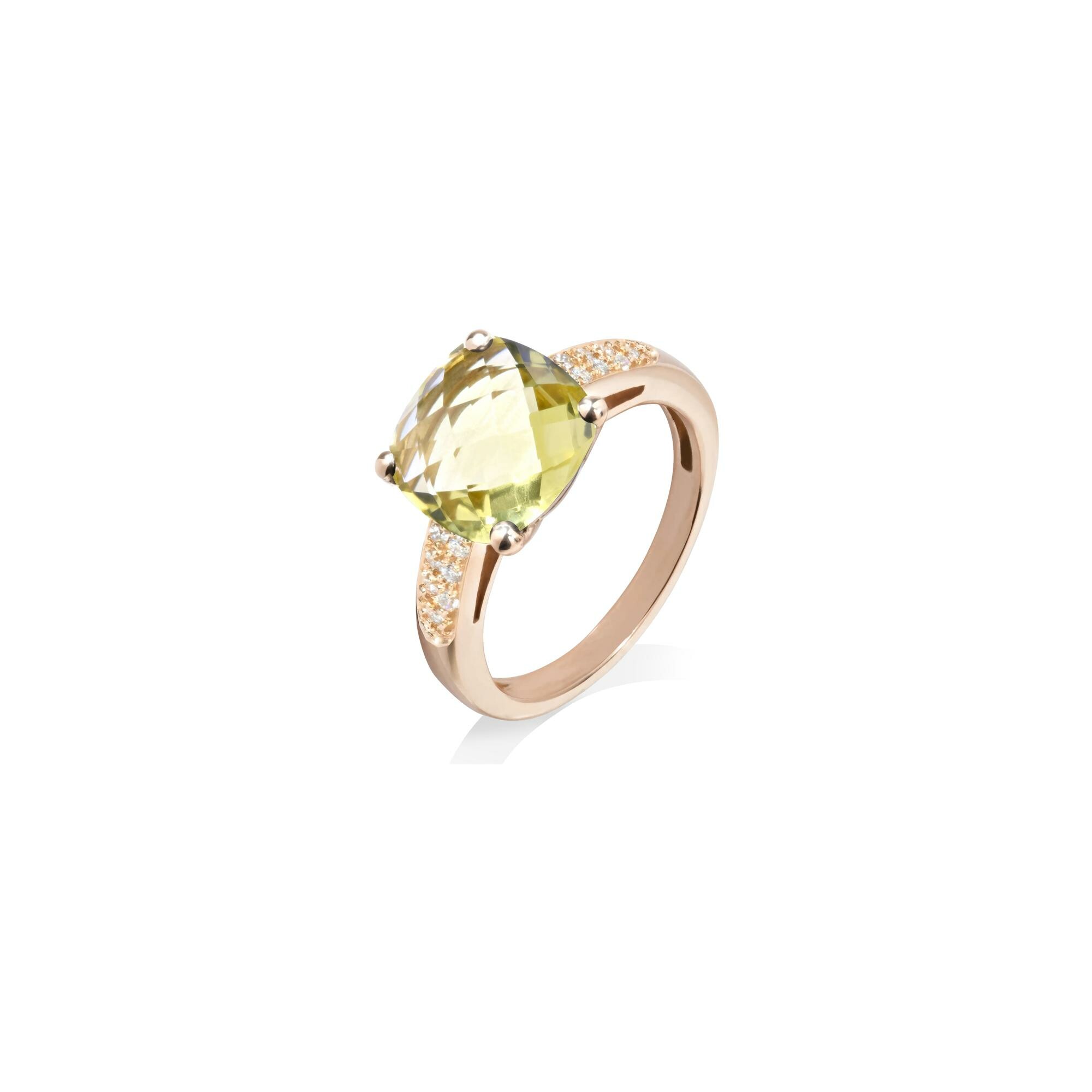 Poppy Blue Bague Cesare Pompanon Poppy Blue en or rose, diamants et quartz lemon, petit modèle