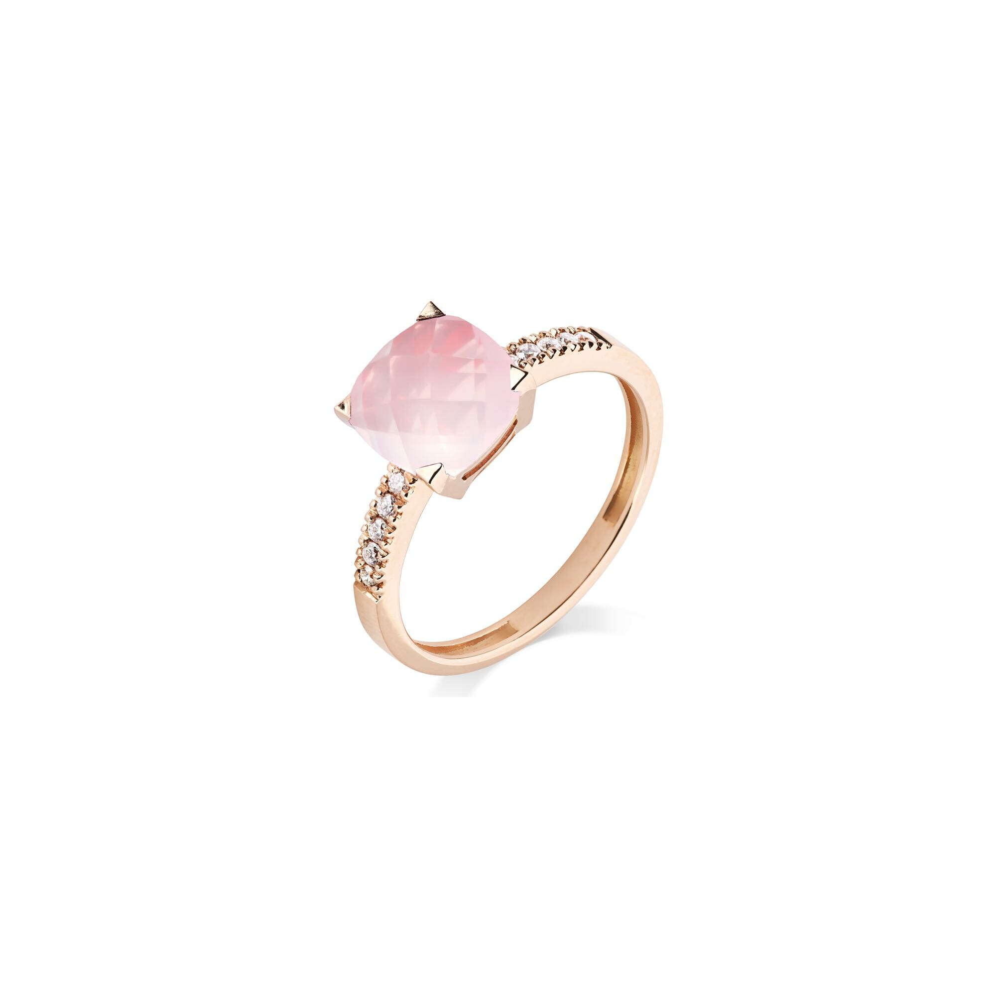 Poppy Blue Bague Cesare Pompanon Poppy Blue en or rose, diamants et quartz rose