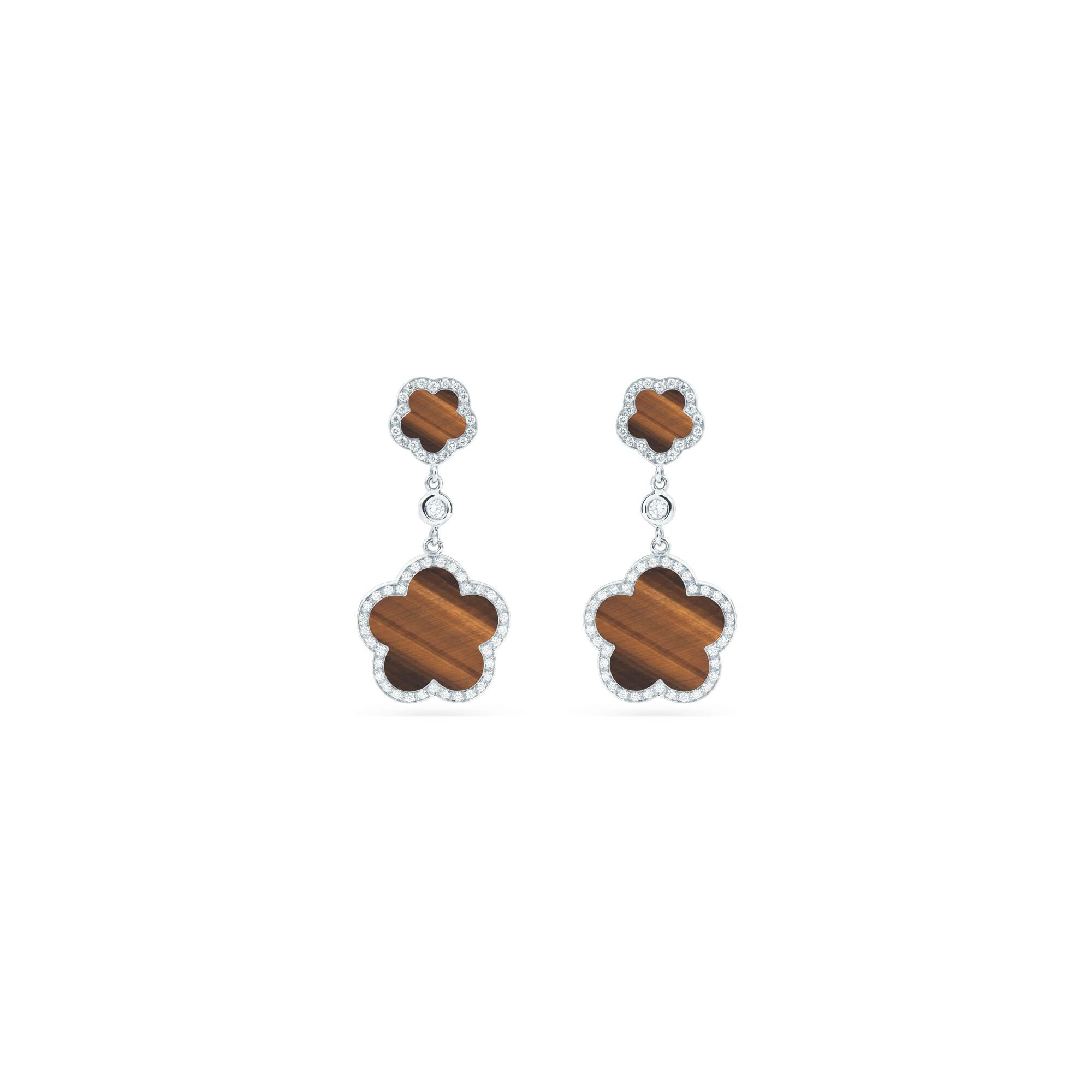 Fiore di Mamma Boucles d'oreilles Pendantes Cesare Pompanon Fiore di Mamma en or blanc, diamants et oeil de tigre