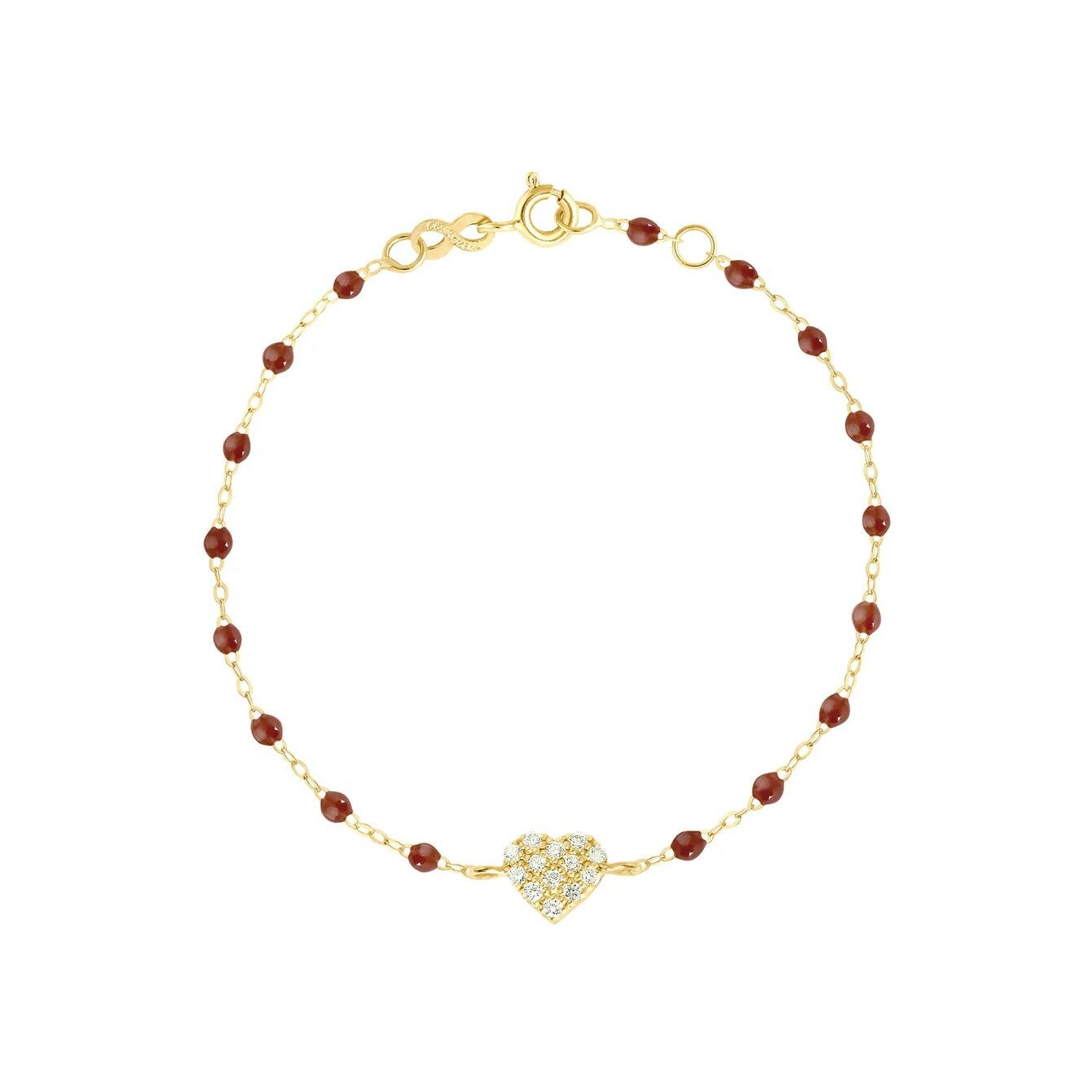 Bracelet Gigi Clozeau In Love en or jaune, résine moka et diamants, taille 17cm
