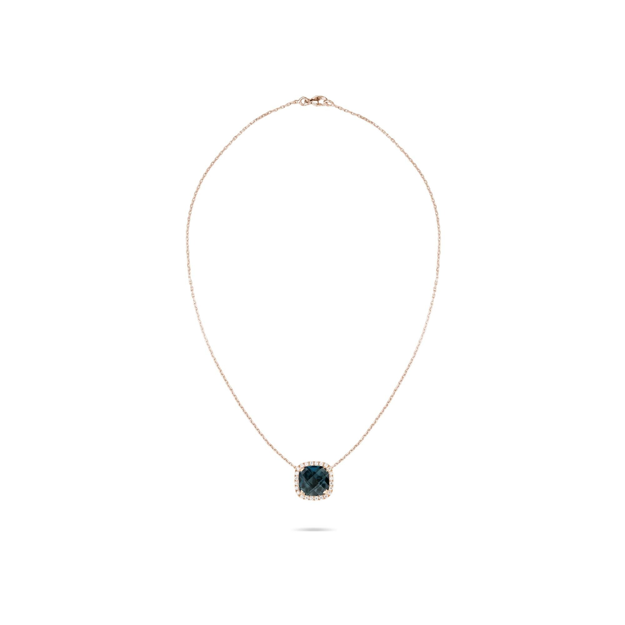 Poppy Blue Collier Cesare Pompanon Poppy Blue en or rose, diamants et topaze london blue
